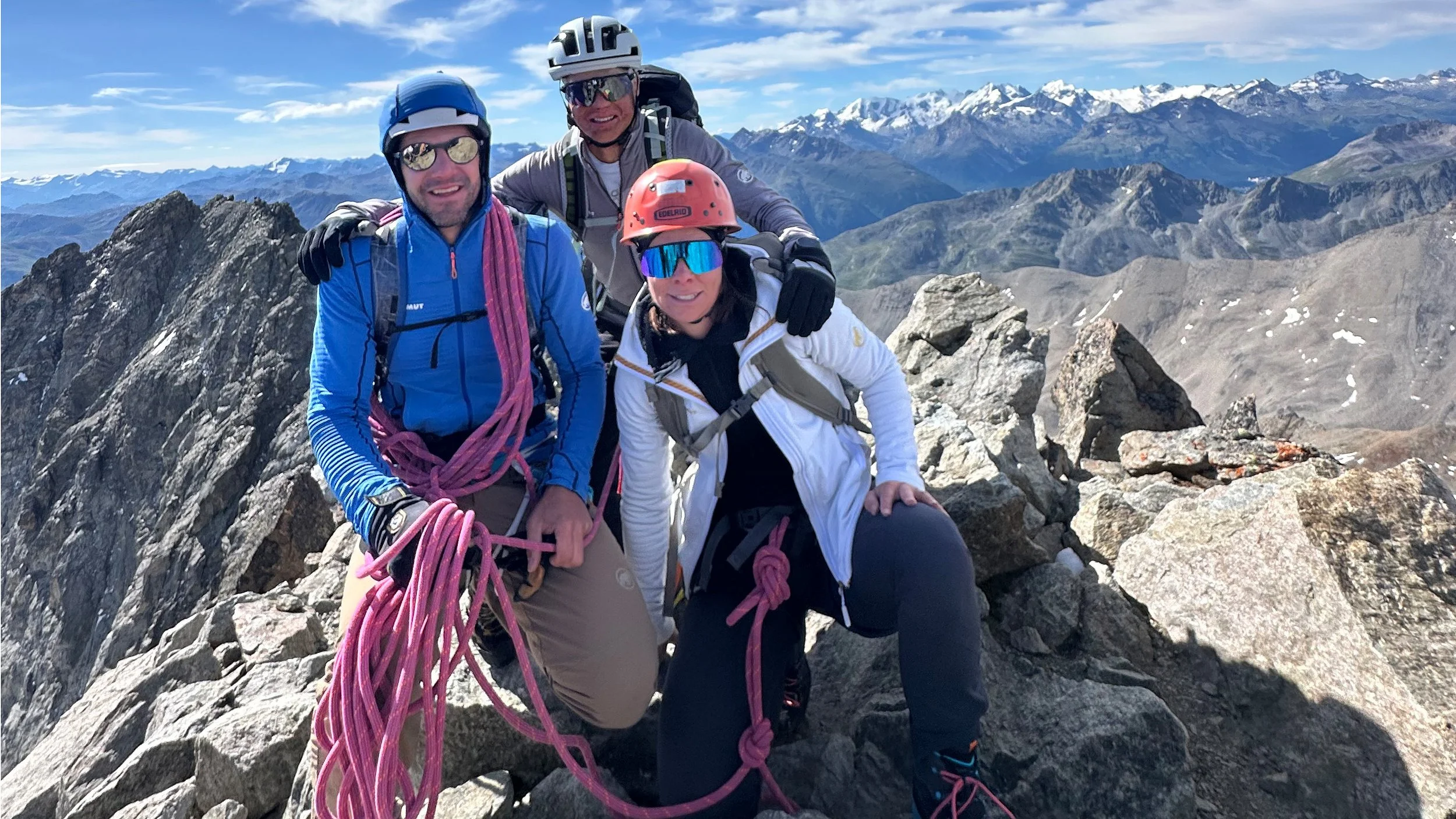 Meine Hochgebirgs-Premiere mit meiner Trainerin Semira und dem Bergführer Leo Luminati. Gleichzeitig war es unsere Vorbereitungstour für die Piz-Palü-Besteigung (Dort geht’s noch 500 Meter höher) Die Tour inkl. Gletschertraverse war atemberaubend schön… doch auch herausfordernd.